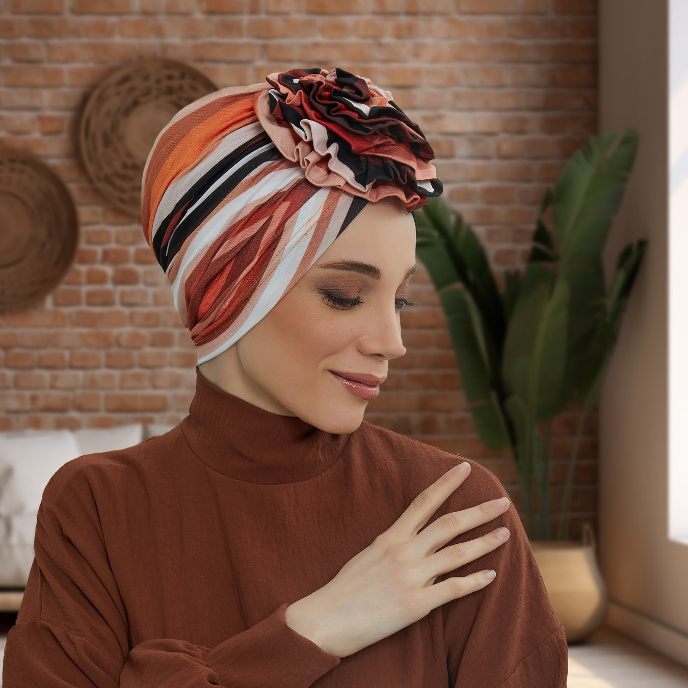 * Inner Turban Cap Fabric Type: Combed Cotton (95% Cotton & 5% Lycra)* Chiffon Shawl Fabric Type: Chiffon (%100 Polyester)* Size: One-size-fits...