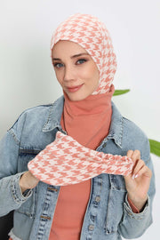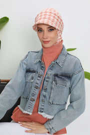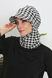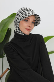 Winter Patterned Turban with Removable Visor, Women's Polyviscose Stretch Headwrap, Stylish One-Size Headscarf for Cold Weather,B-82DIV