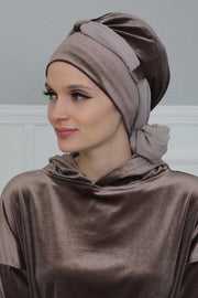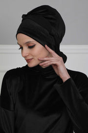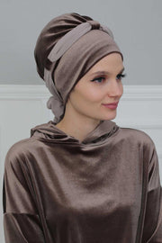 عمامة مخملية فورية مع حزام شيفون، غطاء رأس ملفوف للرأس عالي الجودة مع عصابة رأس شيفون للنساء، غطاء رأس عصري، B-24K