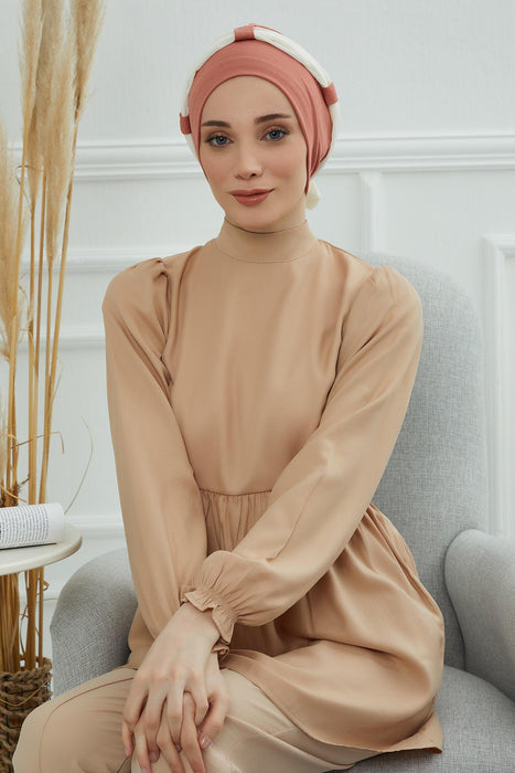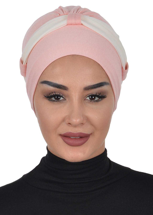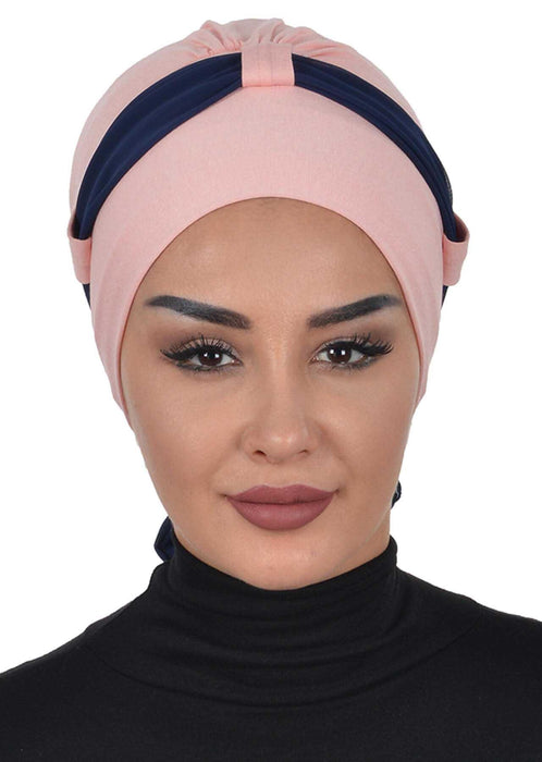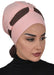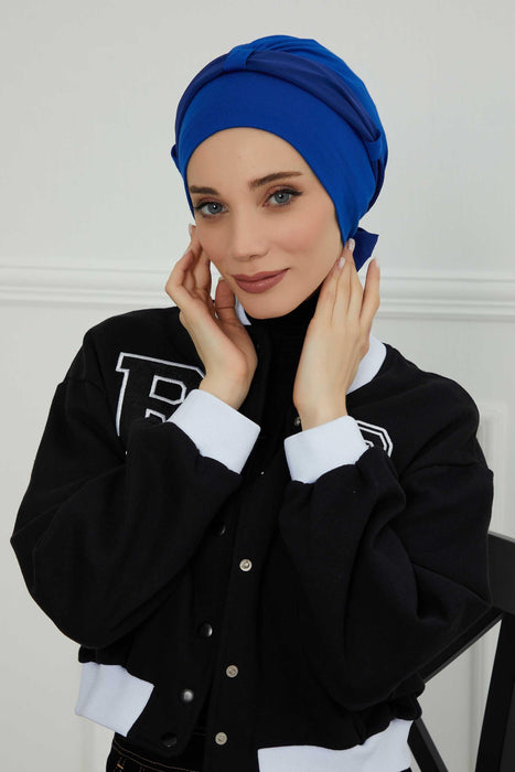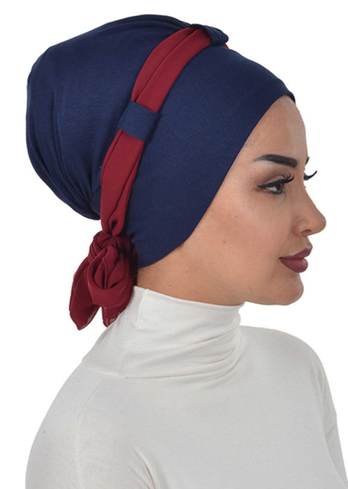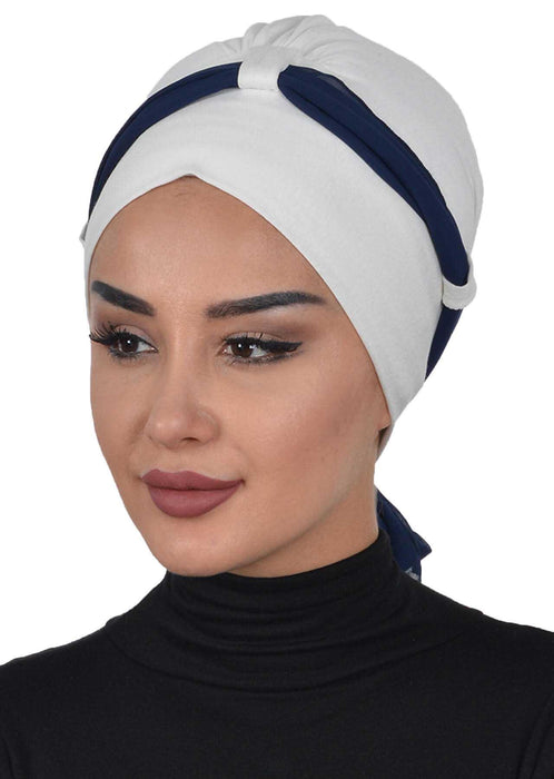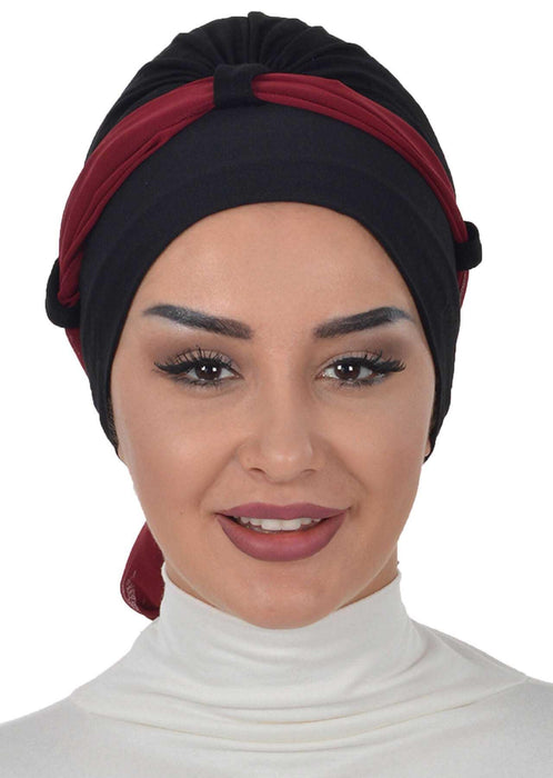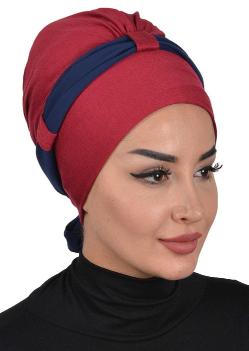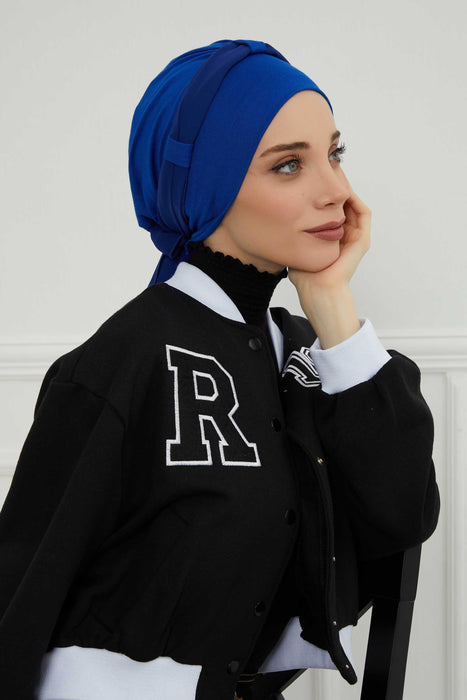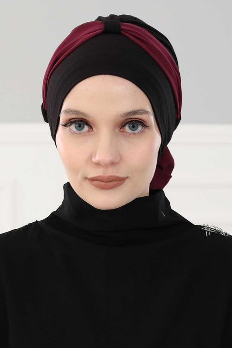 غطاء رأس عمامة ثنائي اللون مع شريط شيفون، غطاء رأس إسلامي عصري للنساء، غطاء رأس متعدد الاستخدامات جاهز للارتداء للنساء، B-24