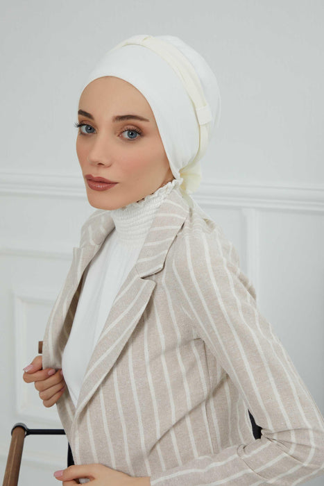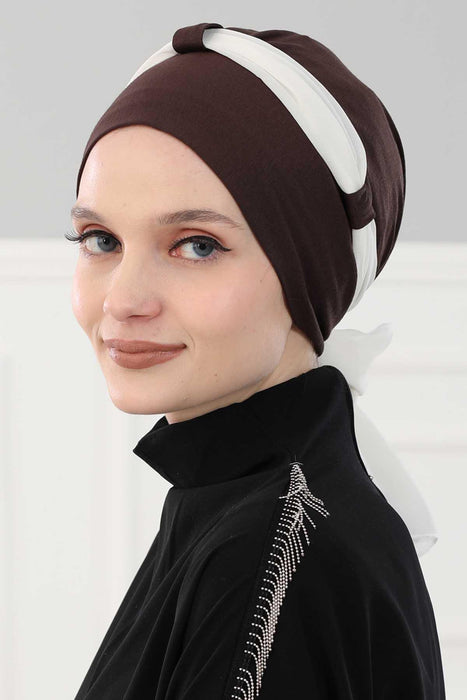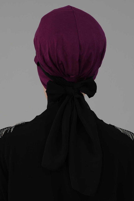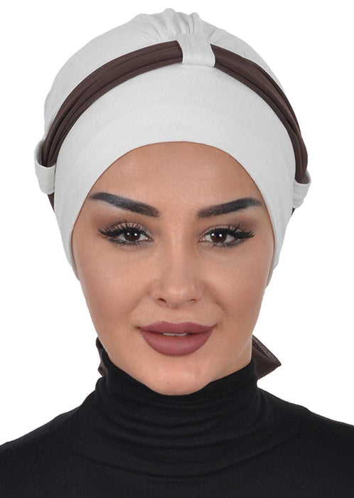 تم تصميم غطاء الرأس ثنائي اللون مع شريط من الشيفون للمرأة العصرية التي تقدر الأناقة والسهولة. يُعد غطاء الرأس الجاهز للارتداء هذا مثاليًا لتلك الصباحات المزدحمة عندما تحتاجين إلى الظهور بأفضل مظهر دون قضاء الكثير من الوقت. يضمن القماش الناعم القابل للتنفس الراحة طوال اليوم، مما يجعله مثاليًا لأي مناسبة، من الخروجات غير الرسمية إلى المناسبات الخاصة.