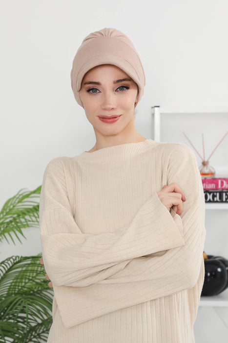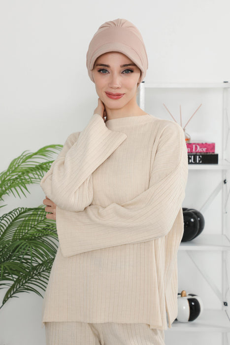 قبعة عمامة نسائية من القطن، قبعة واقية من الشمس للنساء، قبعة حجاب عادية 95% قطن، قبعة علاج كيميائي، B-73