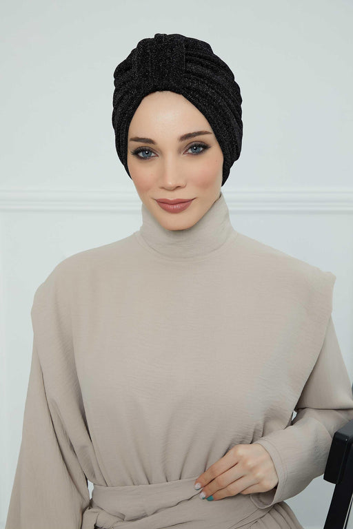 عمامة فورية أنيقة مطرزة بالترتر للنساء، لفافة رأس أنيقة وسهلة، قبعة حجاب عصرية متعددة الاستخدامات، غطاء رأس قابل للتنفس لتساقط الشعر، B-9P