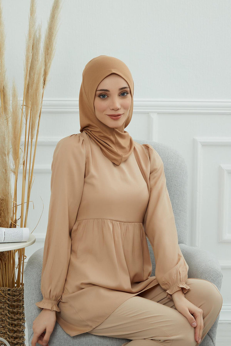 تم تصميم غطاء الرأس هذا للنساء اللواتي يقدرن الراحة دون التنازل عن الأناقة. تصميمه سهل الارتداء يجعله مثاليًا لتلك الصباحات المزدحمة عندما تحتاجين إلى حل سريع وأنيق. مصنوع من قماش ناعم وجيد التهوية، يضمن غطاء الرأس هذا الراحة طوال اليوم، مما يجعله خيارًا مثاليًا للارتداء غير الرسمي وكغطاء داخلي تحت الحجابات الأخرى. مع 21 خيارًا مختلفًا من الألوان المتاحة، يمكنك بسهولة العثور على الظل المثالي ليناسب خزانة ملابسك أو حالتك المزاجية، مما يجعله إضافة متعددة الاستخدامات وعملية لمجموعتك.