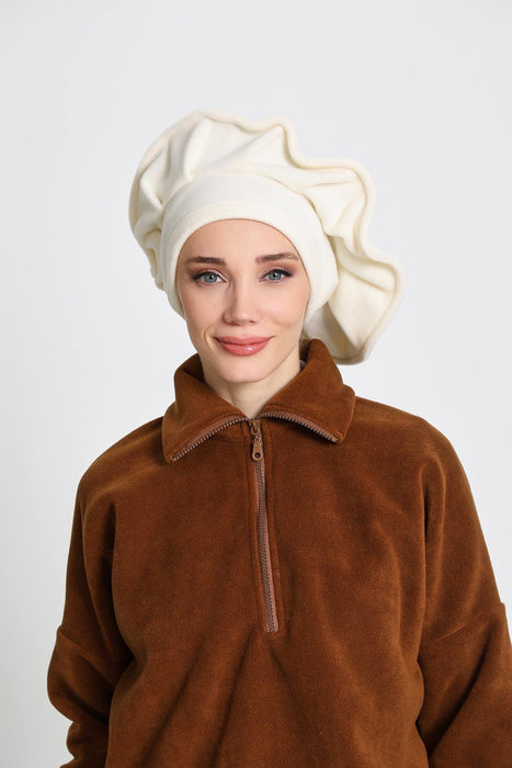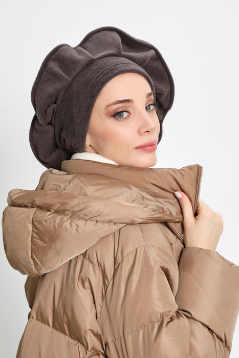 Crafted from soft, high-quality fleece, this beret-style winter hat offers exceptional warmth and comfort, making it an ideal choice for chilly days. The turban-inspired detailing ensures a snug fit, keeping your head and ears protected from the wind while adding a fashionable twist to traditional winter headwear. Lightweight yet insulating, it’s the perfect balance of comfort and functionality, ensuring you look and feel your best, even on the frostiest mornings.