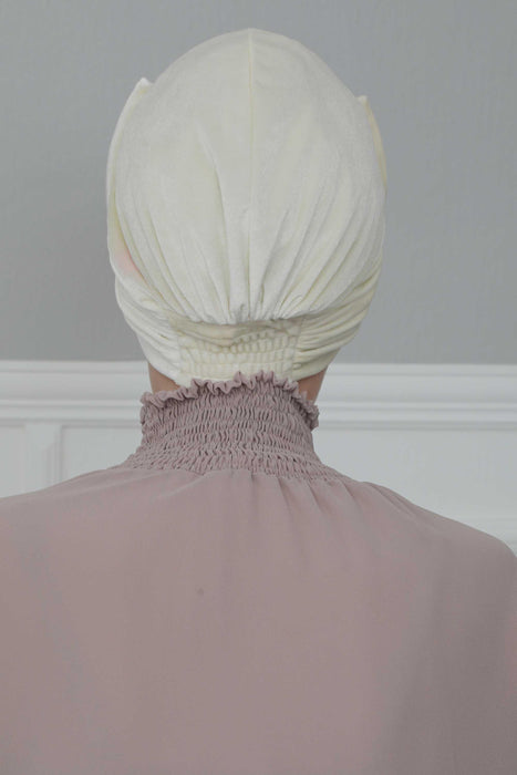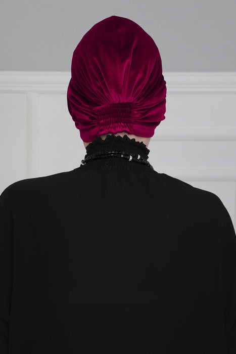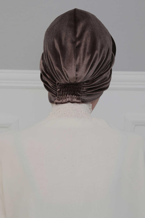 حجاب عمامة مخملي فوري للنساء، غطاء رأس خفيف الوزن، عمامة فورية فاخرة مربوطة مسبقًا، قبعة كيميائية مخملية عصرية، B-11K