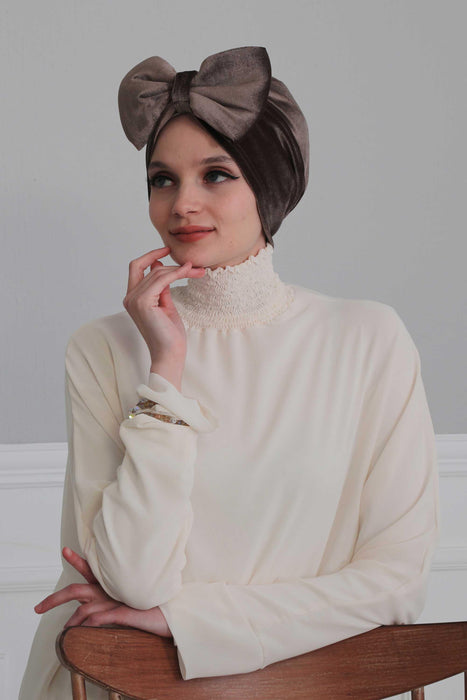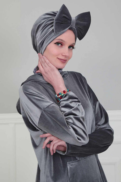 استمتعي بمزيج مثالي من الفخامة والسهولة مع حجابنا المخملي الفوري بعقدة على شكل فيونكة. صُمم هذا الحجاب للمرأة العصرية التي لا تتنازل عن الأناقة أو الراحة، وهو شهادة على الأناقة السهلة. لا تمثل المادة المخملية الفاخرة إشارة إلى الموضة الراقية فحسب، بل توفر أيضًا لمسة لطيفة على الجلد، مما يجعلها خيارًا مثاليًا لأولئك الذين لديهم احتياجات حساسة، مثل مرضى تساقط الشعر والثعلبة ومرضى العلاج الكيميائي الذين يبحثون عن خيار غطاء رأس ناعم ومريح.