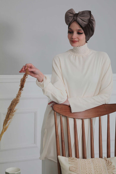 نظرًا لأهمية الموضة الشاملة، فقد ابتكرنا هذه العمامة بعناية لتلبية احتياجات النساء اللاتي يضعن الحشمة في المقام الأول دون التضحية بأناقتهن من أجل الموضة. لا تضيف مادة المخمل طبقة من الدفء فحسب، مما يجعلها مثالية للمناخات الباردة، بل إن سطحها اللامع يلتقط الضوء بشكل جميل، مما يبرز ملامح من ترتديه بتوهج خافت.