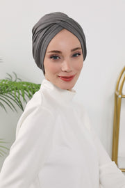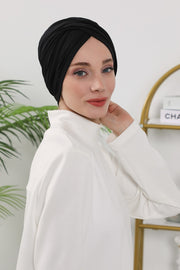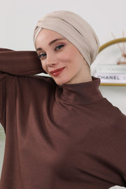 One Size Twist Front Bonnet Hijab, Soft Stretch Double Face Fabric Turban for Women, Modest All Seasons Underscarf Cap,B-9O