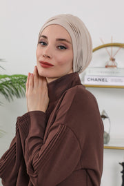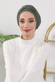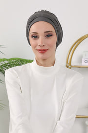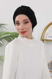 Pleated Instant Turban Hijab for Women, Soft Double Face Fabric Ready to Wear Modest Head Cover,B-19O