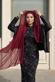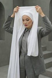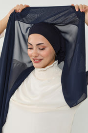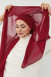 Instant Chiffon Scarf with Sewn Cotton Undercap Bonnet, Practical One Piece Hijab for Women, No Pin Head Covering,PS-51