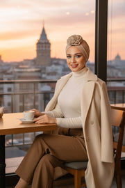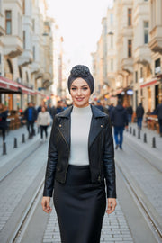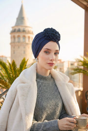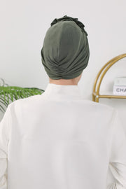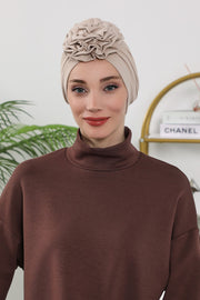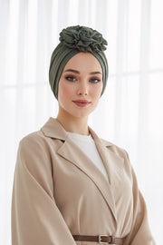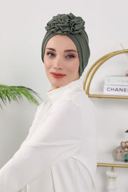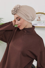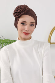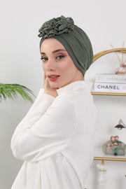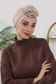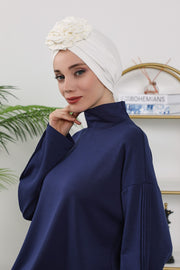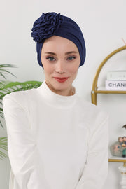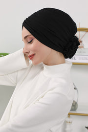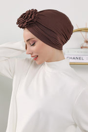 Floral Design Instant Turban Hijab for All Seasons, Ready to Wear Headscarf with Rose Accent, Soft Stretchy Fabric, Comfortable One Size Head Cover for Women,B-21O