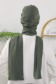 Slip into effortless elegance with this instant turban hijab featuring a beautifully integrated long scarf. Crafted from soft, stretchy double face fabric, it offers a breathable, lightweight feel that’s made to move with you through every season. The attached scarf flows gracefully, giving you endless styling options — drape it simply, wrap it for a layered look, or let it fall naturally for an effortlessly chic finish.