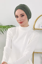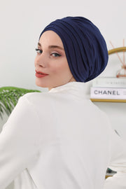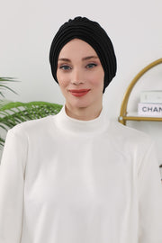 Shirred Elegance Turban for Women for All Seasons, Ready to Wear Stretchy Headwrap for Women, Breathable One Size Modest Hijab Cap for Everyday and Special Occasions,B-13O