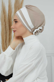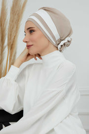 Stylish Double Colored Pre-tied Instant Turban For Women, Aerobin Fabric Floral Hijab Headscarf, Comfortable No Wrinkle Chemo Headwear,B-67