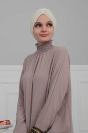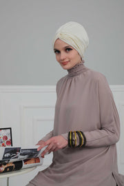 Our Elegant Pre-Tied Velvet Headwrap is a designer's dream, crafted to perfection to complement the unique style of every woman. The meticulous attention to detail is evident in the soft gathers and pleats that create a voluminous look, synonymous with regal grace. The versatility of this piece allows it to be a staple in any wardrobe, effortlessly matching with both casual and formal attire. Ideal for those who value modesty without compromising on fashion, it serves as a symbol of chic modesty. This headwrap is not just a statement piece but also a nod to cultural heritage, blending the artistry of Maharajah-inspired designs with the needs of contemporary fashion enthusiasts.