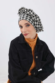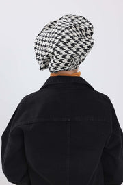 French-Style Winter Turban Headwrap, Houndstooth & Leopard Printed Women Winter Turban, Elegant French-Influenced Winter Headwrap,B-79