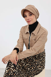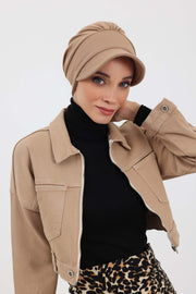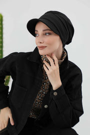 Stylish Visor Hijab Turban for Winter, Ribbed Polyviscose Instant Turban Bonnet for Women, Warm Winter Turban with Built-In Visor,B-73IV