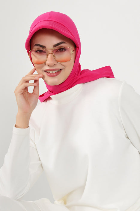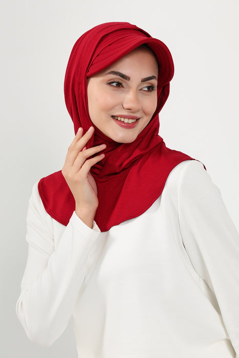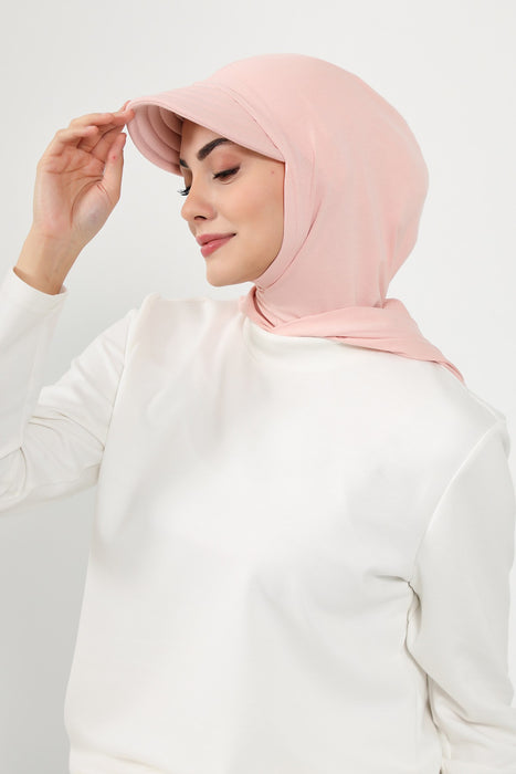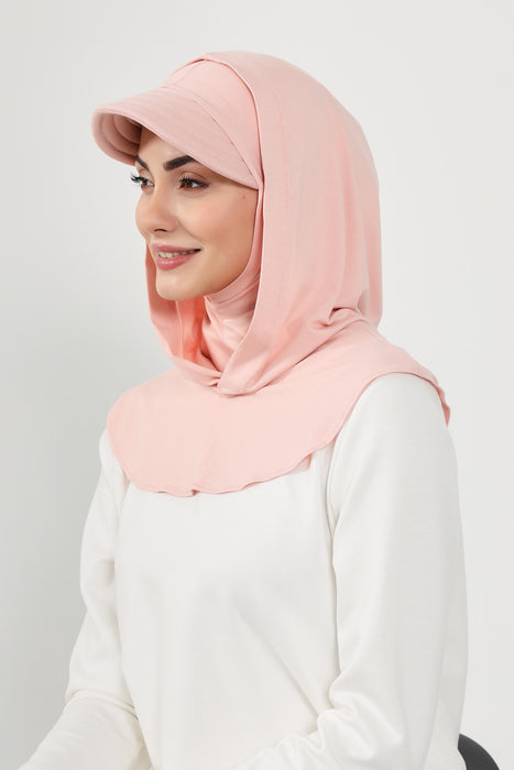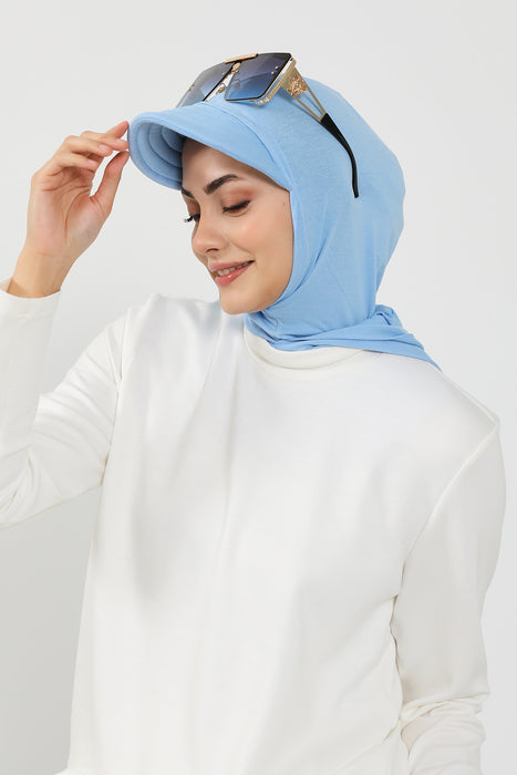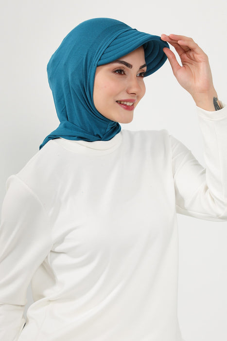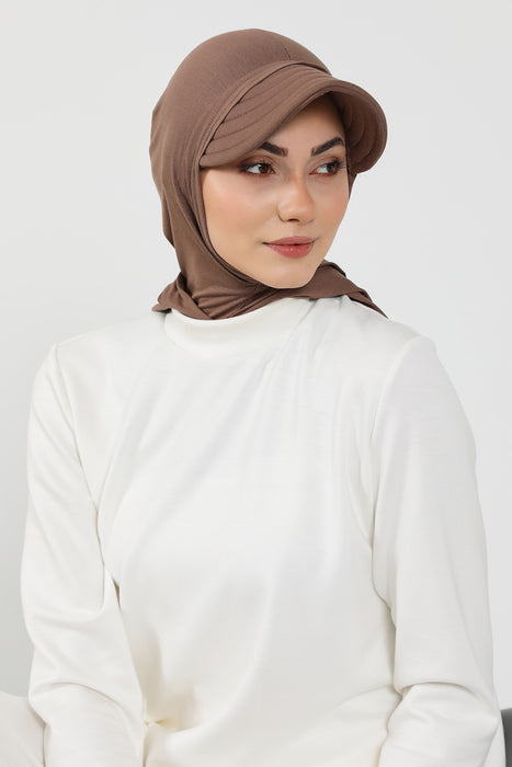 The stretchable cotton fabric hugs gently without being tight, making it perfect for long wear without discomfort. The visor adds a stylish, functional touch by offering shade and coverage without the need for additional accessories. It’s also a great base layer for open-front scarves or can be worn on its own for a sleek, clean look. Designed with busy, modest women in mind, it offers full coverage from head to neck without compromising on breathability or style.