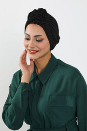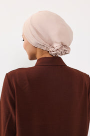 Pre-Tied Aerobin Hijab Cap with Back Rose Detail, Lightweight Instant Turban Bonnet for Women,B-53A