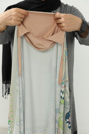 With its elegant printed pattern and practical design, this scarf is the perfect blend of convenience, comfort, and chic modest style.
