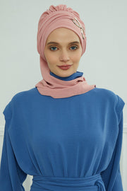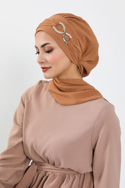 Instant-Turban, leichter Aerobin-Schal, Kopf-Turbane mit wunderschönem goldenen Accessoire für Damen, Kopfbedeckung, stilvolles, elegantes Design, HT-94