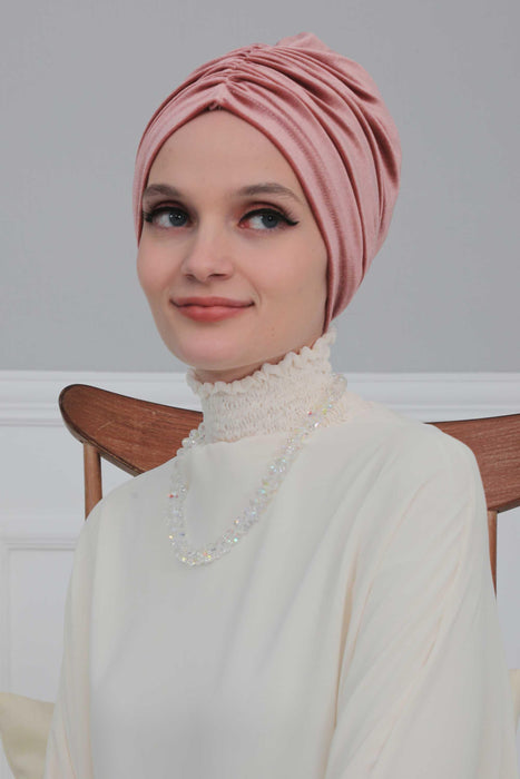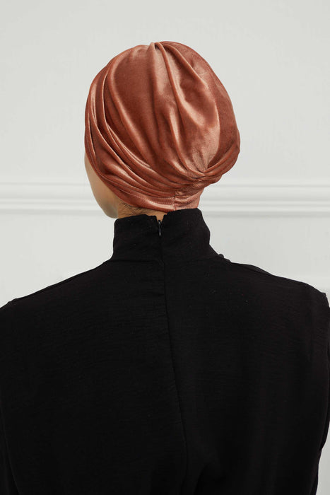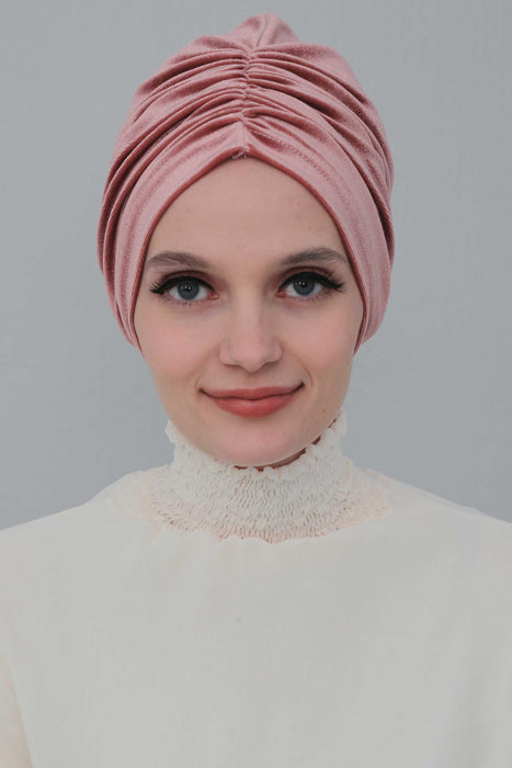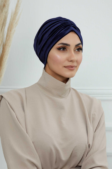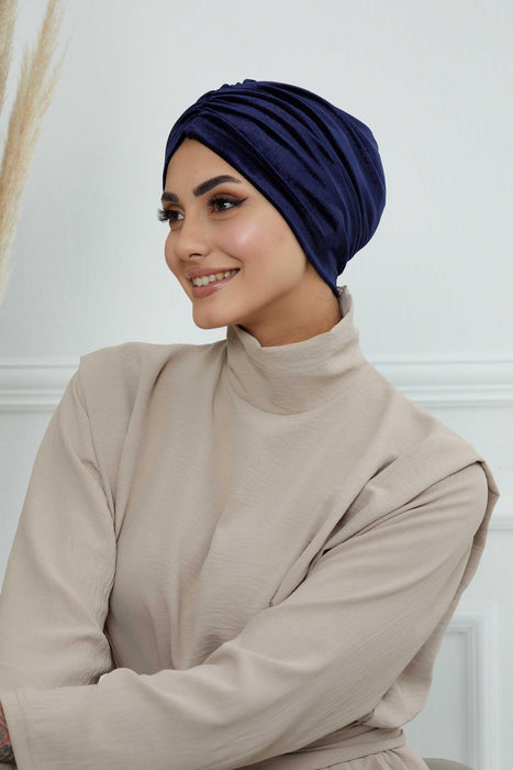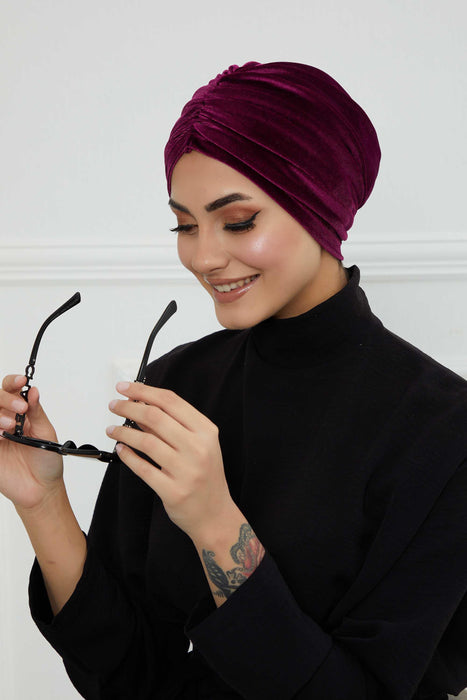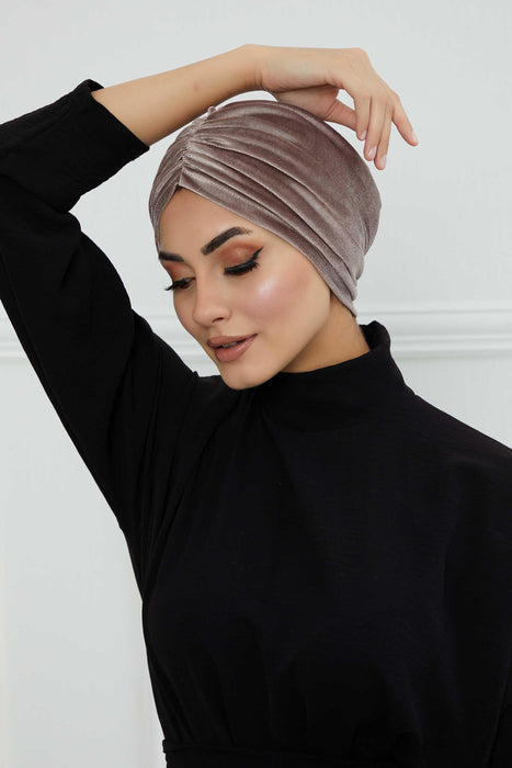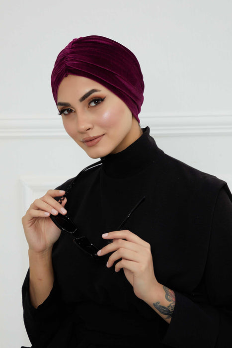 Eleganter Samt-Turban mit Raffung für Damen, luxuriöser Samt-Kopfwickel, modische vorgebundene Hijab-Turbanmütze für Damen,B-20K