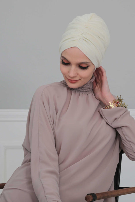 Unser samtig geraffter Instant-Turban ist ein Beweis für die Harmonie von Mode und Funktion. Er ist die ideale Wahl für die moderne Frau, die eine Mischung aus zeitgenössischem Stil, Komfort und Funktionalität sucht. Mit seiner bequemen Tragbarkeit und dem schmeichelhaften gerafften Design ist er ein vielseitiges Accessoire, das zu einer Vielzahl von Outfits und Anlässen passt und ihn zu einer wertvollen Ergänzung für jede Garderobe macht.