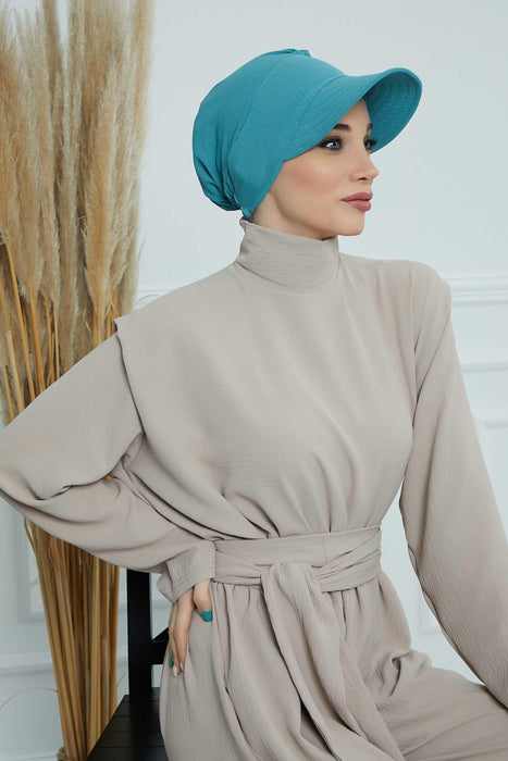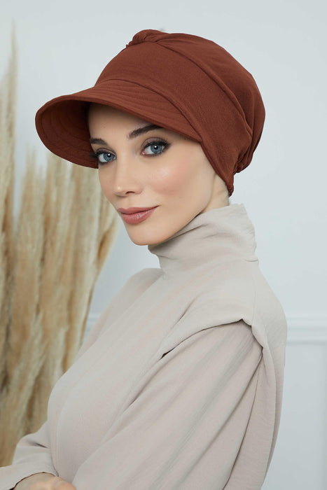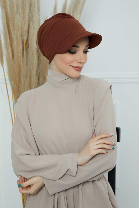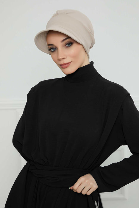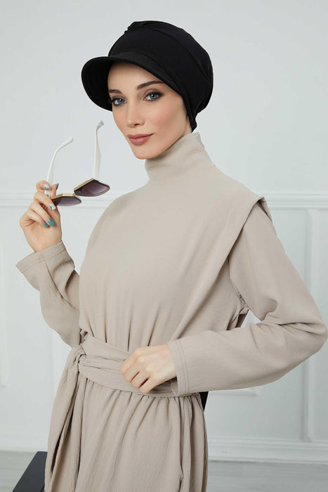 Hochwertige Newsboy-Mütze für Damen, vorgebundener Turban aus hochwertigem, knitterfreiem Aerobin-Stoff, Turban-Abdeckung mit Visier, B-73A