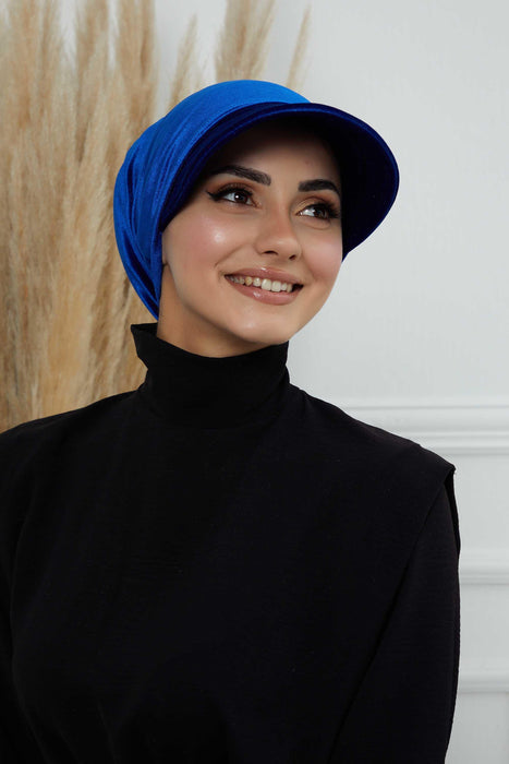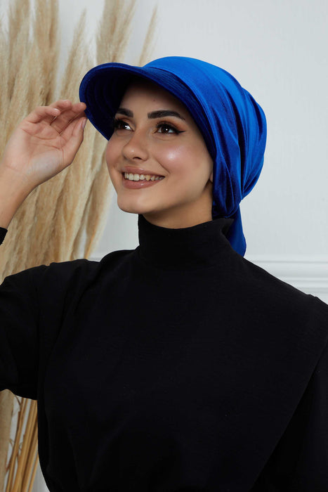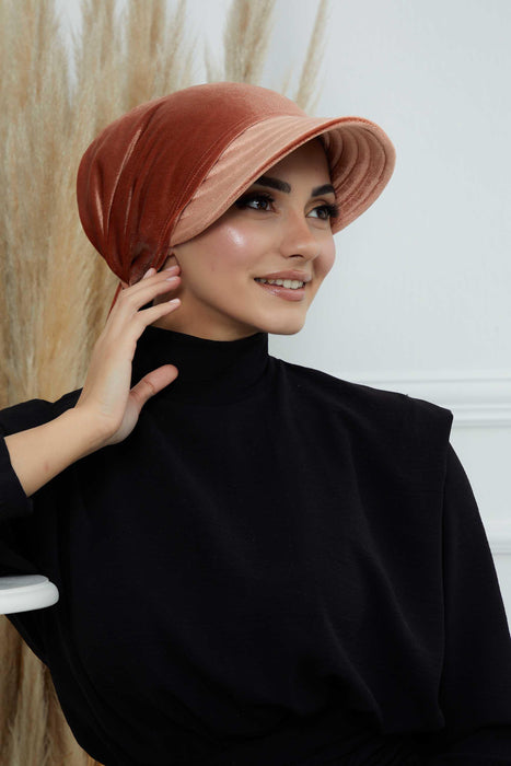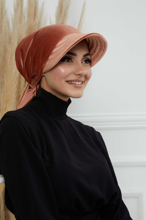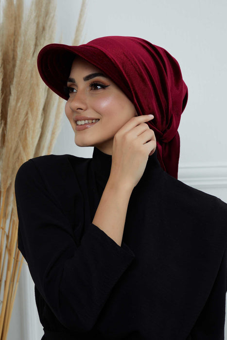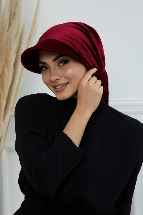 Vorgebundene Instant-Turbanmütze aus Samt für Damen, superweiche Schirmmütze aus Samt für Damen, Sonnenschutzvisier, Chemo-Kopfbedeckung, B-71K