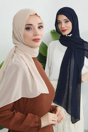 This 2-pack of instant chiffon shawls is designed to simplify your day while keeping you effortlessly elegant. Each hijab comes with a built-in cotton bonnet cap underneath, offering full coverage with a comfortable and secure fit—no need for extra pins or layers. Whether you're getting ready for a busy workday, prayer, or a special gathering, you’ll love how quick and graceful these scarves make you look and feel.