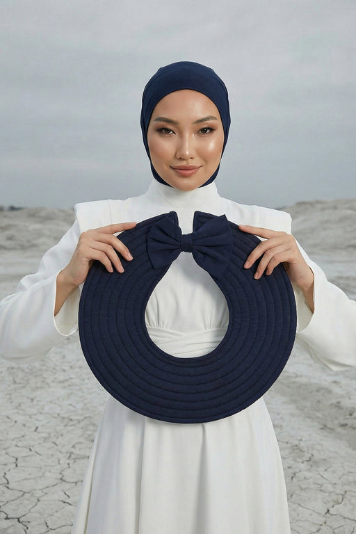 Modest Sun Protective Turban Bonnet with Removable Bow Brim for Women, 2-in-1 Hijab Hat with Removable Brim,S-4