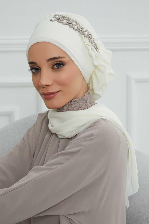 Vollständige Details anzeigenInstant-Turban, Chiffon-Schal, Kopf-Turbane mit wunderschönem, einzigartigem Schmuckstein-Accessoire für Frauen, Kopfbedeckung, stilvolles, elegantes Design, HT-104