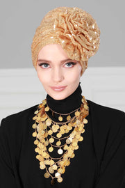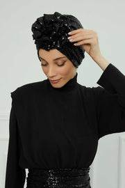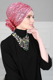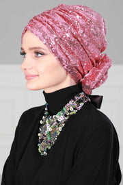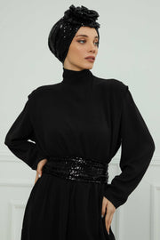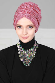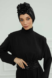Dieser aus hochwertigen Materialien gefertigte Instant-Turban ist langlebig und so konzipiert, dass er auch nach häufigem Tragen sein luxuriöses Aussehen behält. Die glitzernden Pailletten sind sorgfältig angebracht, um eine lange Lebensdauer zu gewährleisten, während die reiche Textur des Stoffes zu seinem anspruchsvollen Profil beiträgt. Diese pflegeleichte Hijab-Kappe ist eine wertvolle Ergänzung für jede Garderobe und verspricht sowohl Stil als auch Funktionalität. Genießen Sie die Kombination aus Mode und Komfort mit diesem atemberaubenden Kopfschmuck.