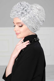 Dieses exquisite Kopftuch ist der Inbegriff schicker Schlichtheit und besticht durch ein bezauberndes, großes, ausgefallenes Rosendetail, das Ihr Ensemble sofort aufwertet. Die mit akribischer Liebe zum Detail gefertigten schimmernden Pailletten fangen bei jeder Bewegung das Licht ein und erzeugen eine strahlende und gehobene Ästhetik, die sich perfekt für jeden Anlass eignet. Egal, ob Sie an einer formellen Veranstaltung teilnehmen oder einfach Ihrer Alltagskleidung einen Hauch von Glamour verleihen möchten, dieser Turban-Hijab verleiht Ihnen sofort einen modischen Look.