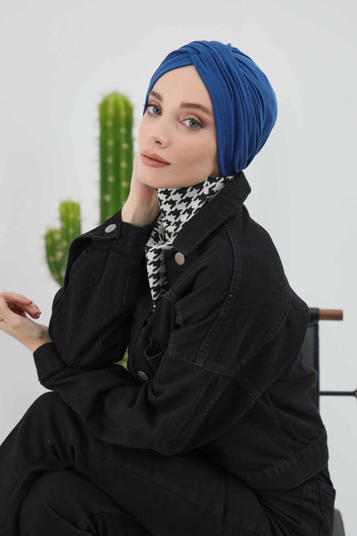 Verstellbare Winter-Turbanhaube mit Bindeband hinten, stylisches Polyviskose-Kopftuch mit langem Schwanz, stylischer Winter-Instant-Turban-Hijab, B-49IV