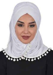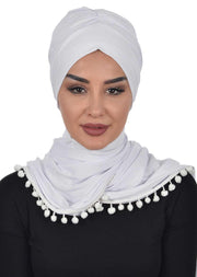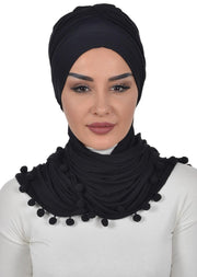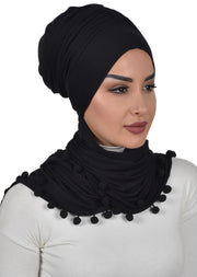 Jersey Shawl for Women 95% Cotton Modesty Turban Cap Wrap Instant Scarf Shawl With Pompom,BT-2