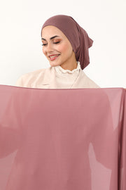If you're someone who prefers practical yet elegant hijabs for everyday wear, this set is a great choice. You don’t need to search for matching pieces or worry about adjusting layers throughout the day—just slip on the bonnet, wrap the scarf, and you're ready to go. The wrinkle-resistant crepe fabric makes it ideal for both busy routines and travel, and the one-size-fits-all design ensures it suits most face shapes and styles.