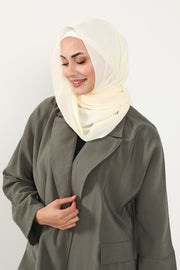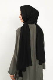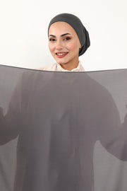 This two-piece crepe hijab set with a cotton bonnet is designed to make your daily wear effortless, modest, and stylish. It includes a lightweight queen crepe shawl and a soft, stretchy inner bonnet that work beautifully together for a clean and secure look. The undercap is made from breathable cotton fabric that gently hugs your head without slipping, while the crepe shawl drapes naturally, giving you full coverage without any bulk.