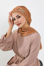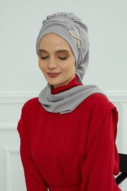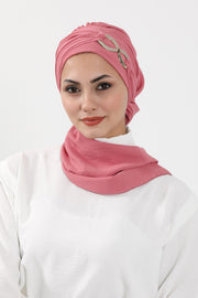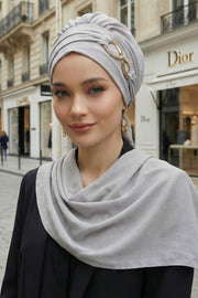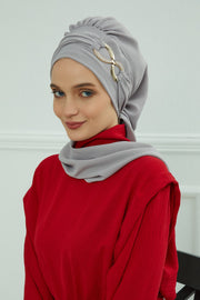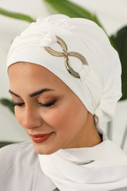 Instant Turban Lightweight Aerobin Scarf Head Turbans with Gorgeous Gold Accessory For Women Headwear Stylish Elegant Design,HT-94