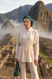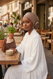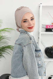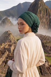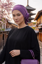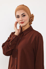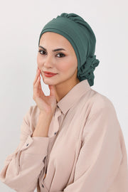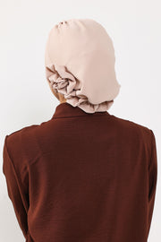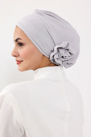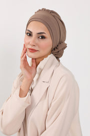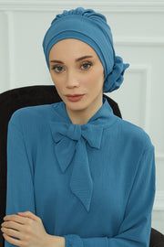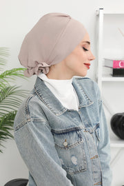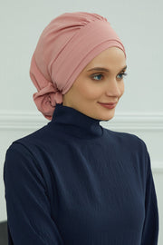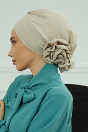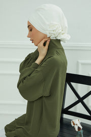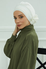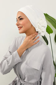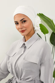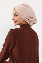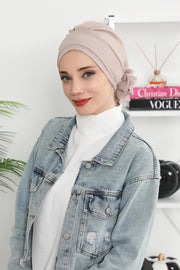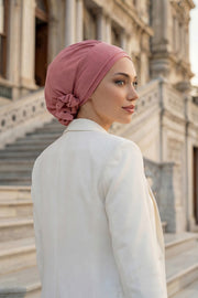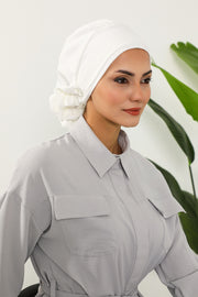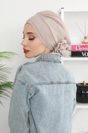 Pre-Tied Modest Turban for Women, Soft Aerobin Fabric Hijab with Stylish Back Flower, Slip-On Cotton Blend Head Cover,HT-92