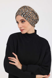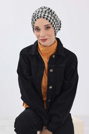 Chic Shirred Winter Turban Bonnet with Houndstooth & Leopard Prints, Cozy Patterned Winter Headwrap made from High Quality Fabric,B-13DIV