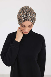 Available in three distinct patterns—black houndstooth, powder houndstooth, and a bold leopard print—this winter turban bonnet offers a range of styles to suit any personality or wardrobe. Whether you're opting for a classic look with houndstooth or adding a bit of wild flair with the leopard pattern, each option delivers a unique fashion statement. Perfect for cold-weather layering, this headwrap is a must-have addition to your winter accessory collection.