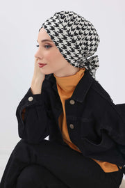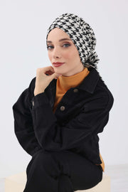 Patterned Winter Turban Bonnet with Back-Tie, Cozy Polyviscose Headwrap for Women, Houndstooth & Leopard Print Instant Turban Bonnet,B-31DIV