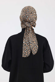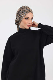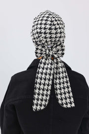 This patterned winter turban bonnet with a back-tie is designed to blend comfort and style effortlessly. Made from a soft polyviscose blend, it offers warmth and stretch, ensuring a snug fit during cold weather. The intricate houndstooth and leopard print adds a bold, fashionable touch to your winter wardrobe, while the back-tie allows for easy adjustments, making it versatile for all-day wear.