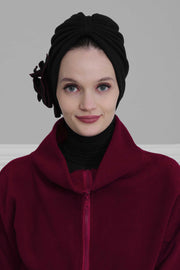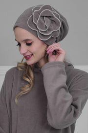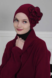 Elegant Rose Embellished Instant Turban for Women, Floral Soft Instant Turban with a Huge Handmade Rose Figure, Winter Instant Turban,B-61