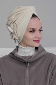 Step into the season with grace and elegance with our "Elegant Rose Embellished Instant Turban for Women". This exquisite turban, rendered in a serene ivory tone, is accentuated with a striking, handmade rose figure, adding a dimension of romance and sophistication to your look. The soft fleece fabric not only provides warmth and comfort during the cooler months but also ensures a gentle touch for those with sensitive needs, including chemotherapy patients seeking stylish yet comfortable headwear.