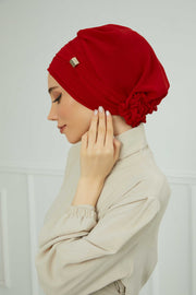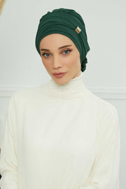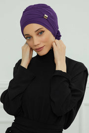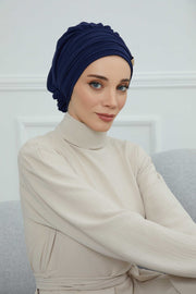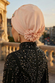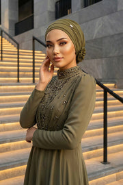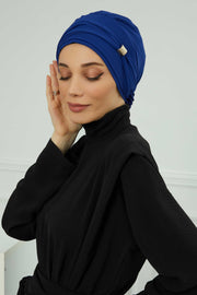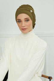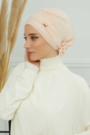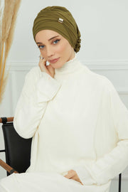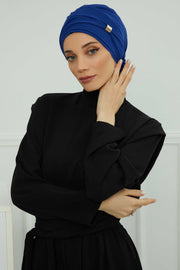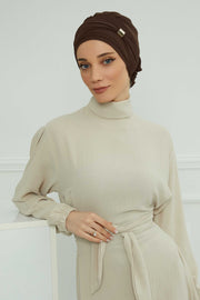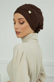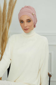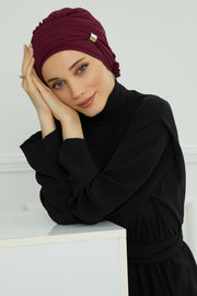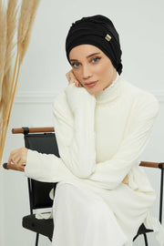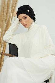 Chiffon Instant Turban with Sleek Gold Accent, Pre-Tied Hijab Cap for Women, Elegant Ready-to-Wear Modest Headwrap,HT-95S