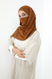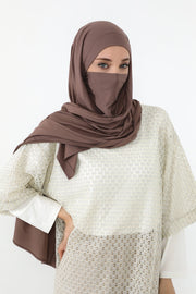 This design was created for women who seek both comfort and complete coverage without compromising on elegance. Crafted from premium stretch jersey fabric, it features an integrated inner bonnet and a detachable face cover (niqab) for versatile modest wear. The result is a soft, breathable, and practical hijab that adapts beautifully to your needs - whether for daily use, travel, or occasions that call for extra coverage.