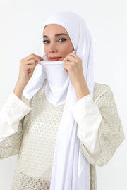 Designed with functionality in mind, this hijab provides full neck and chest coverage, making it ideal for women who value modesty with ease of wear. It can be styled in seconds - no pins required - and its stretchable structure accommodates all face shapes comfortably.